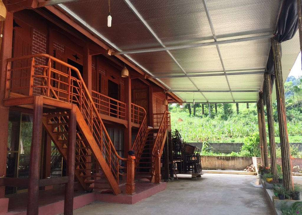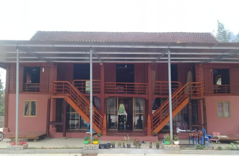 Khu nhà cung cấp đủ dịch vụ lưu trú và ăn uống phục vụ khách. Bên trên phục vụ lưu trú với 2 phòng ngủ tập thể, mỗi phòng chứa được tối đa 25 khách, và 4 phòng riêng. Phía dưới là khu nhà ăn, nhà hàng phục vụ ăn uống, liên hoan, hội họp với 15 bàn phục vụ được 90 lượt khách. Dừng chân tại Homestay, du khách được hòa mình vào phong cảnh thiên nhiên, thưởng thức các món ăn được chế biến đơn giản giữ nguyên hương vị tự nhiên mang đậm bản sắc nơi đây: gà nhiều cựa, vịt suối, lợn thả rừng, cơm lam, xôi ngũ sắc, rau dớn, rau xôi, măng rừng…